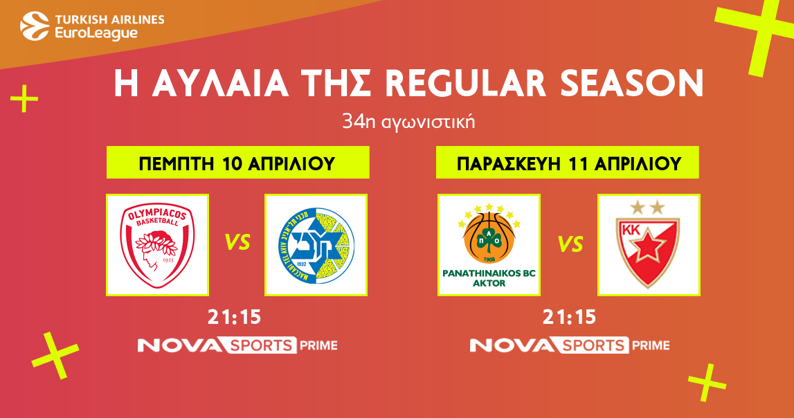 Συναρπάζει η EuroLeague με Ολυμπιακός – Φενέρμπαχτσε και Παναθηναϊκός AKTOR – Βαλένθια στο παρκέ του Novasports