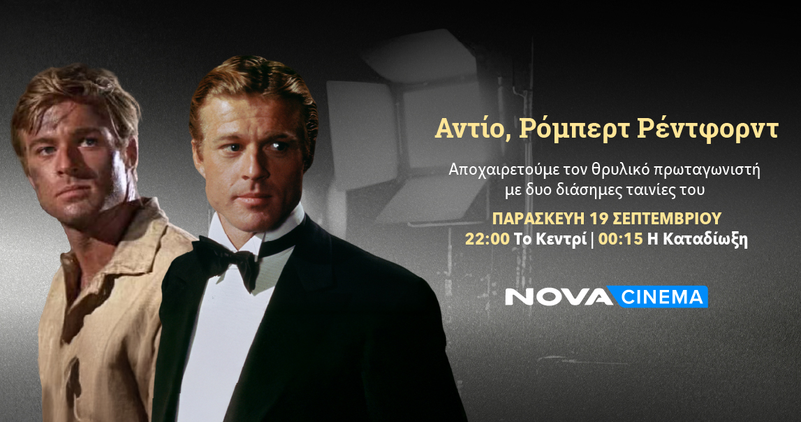 Αθήνα, 19 Σεπτεμβρίου 2025. Η Nova, μέλος της United Group του κορυφαίου παρόχου τηλεπικοινωνιών και media στη Νοτιοανατολική Ευρώπη, αποτίει φόρο τιμής στον εμβληματικό ηθοποιό Robert Redford και οι σινεφίλ θα έχουν την ευκαιρία να παρακολουθήσουν σήμερα Παρασκευή 19 Σεπτεμβρίου από τις 22:00 στο Novacinema2 back–to–back τις top ταινίες «The Sting» («To Κεντρί») και «The Chase» («Η Καταδίωξη») στις 00:15.