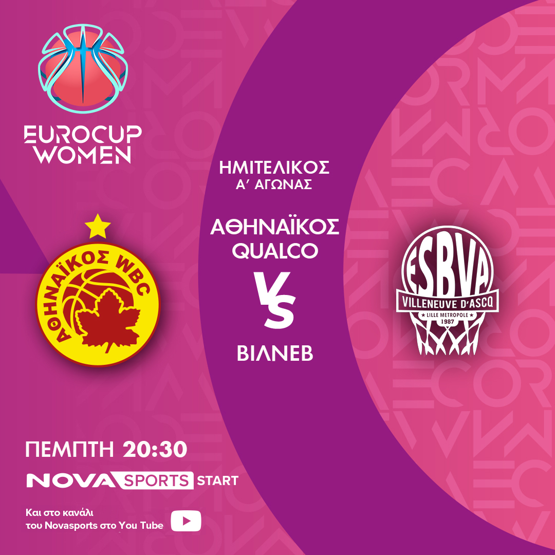 20:30 EuroCup γυναικών-Ημιτελικός 1ος αγώνας: Αθηναϊκός Qualco-Βιλνέβ Novasports Start & You Tube σε περιγραφή του Τάσου Μπαϊρακτάρη και ρεπορτάζ του Θάνου Σολούκου