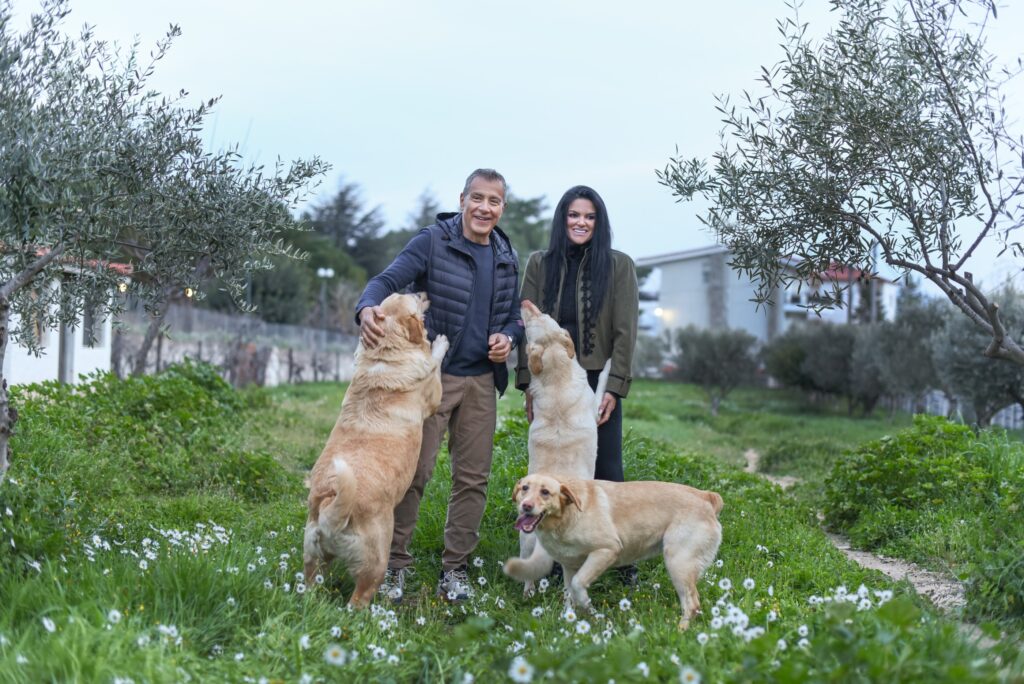 Τα δεκάδες αδέσποτα σκυλιά που φροντίζει πρωταγωνιστούν και αυτά στην εκπομπή από τα σπιτάκια τους στα οικόπεδα που αγοράζει αποκλειστικά γι’ αυτά στο Καπανδρίτι.