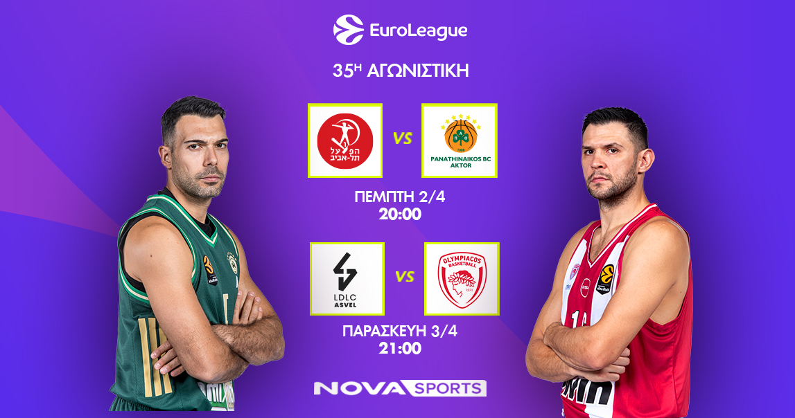 Μπασκετική πανδαισία με EuroLeague & EuroCup και τους τελικούς του Αθηναϊκού Qualco έρχεται στο παρκέ του Novasports! Η EuroLeague, η κορυφαία ευρωπαϊκή διασυλλογική διοργάνωση, συνεχίζεται με αμείωτο ενδιαφέρον και τα βλέμματα στρέφονται στους αγώνες των ελληνικών ομάδων στην 35η αγωνιστική.