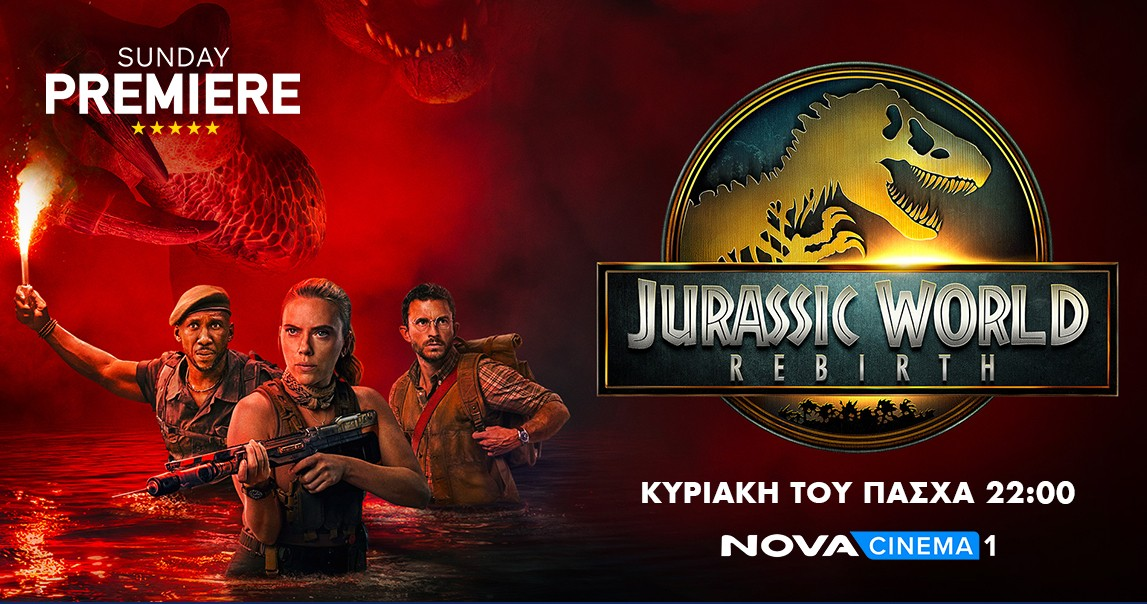 Την υποψήφια ταινία για Oscar Καλύτερων Οπτικών Εφέ στη φετινή τελετή «Jurassic World: Rebirth» (2025, διάρκειας 134’) με τους Scarlett Johansson, Jonathan Bailey, Mahershala Ali, Rupert Friend και σκηνοθεσία του Gareth Edwards θα απολαύσουν οι σινεφίλ την Κυριακή του Πάσχα 12 Απριλίου (22:00) στη ζώνη Sunday Premiere στο Novacinema1.